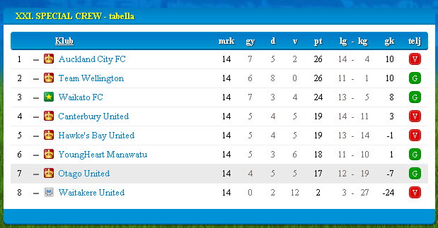 Kezdőlap > Egyesületi Ligák > 21. CREW - ÚJ-ZÉLAND